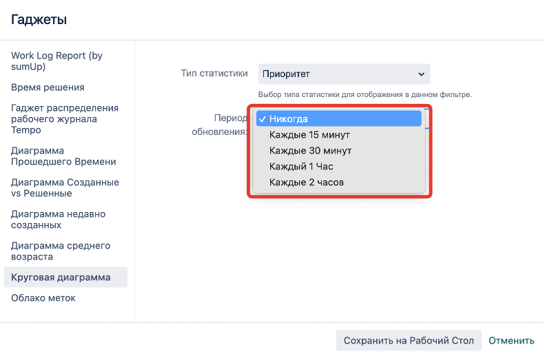 Выбираем в настройках период обновления (чтобы метрика обновлялась в автоматическом режиме) и нажимаем «Сохранить».
