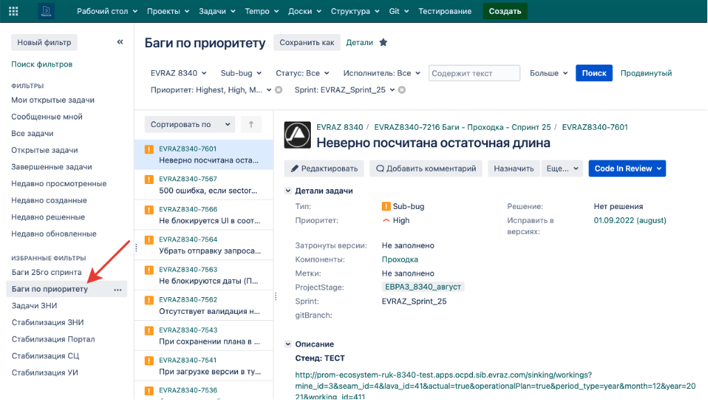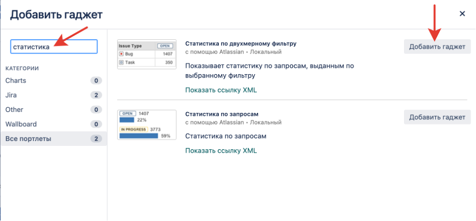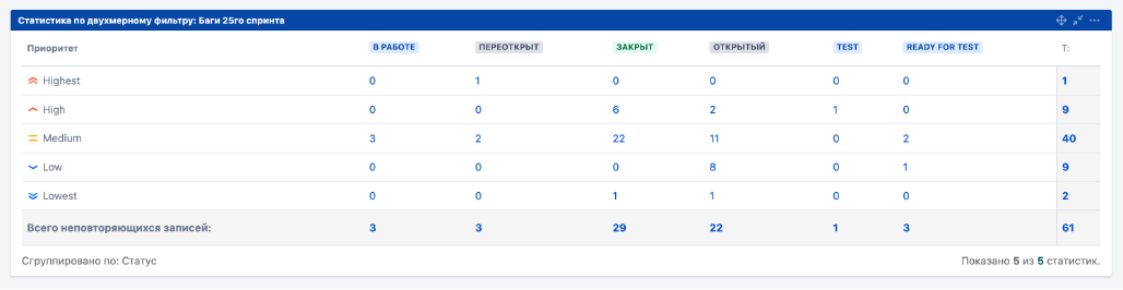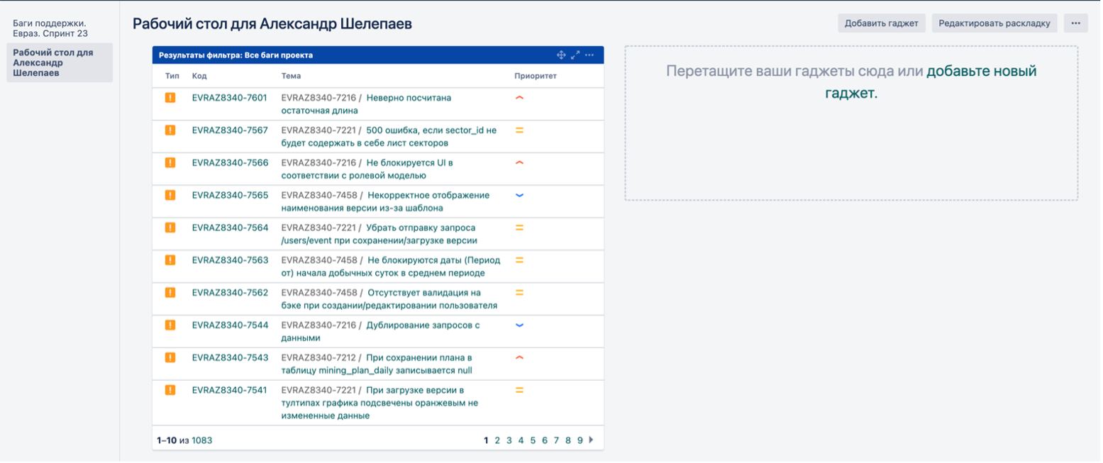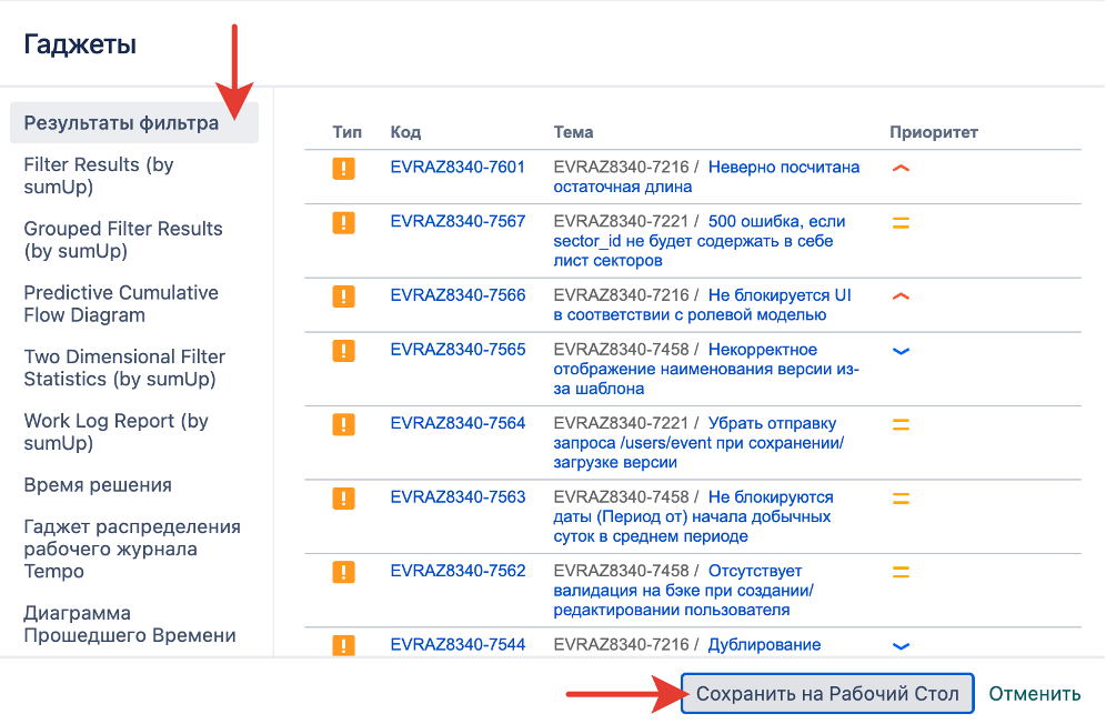 В самом первом гаджете «Результаты фильтра» отображаются уже готовые результаты в виде списка задач.
