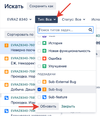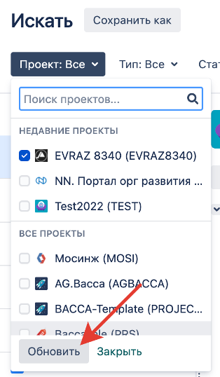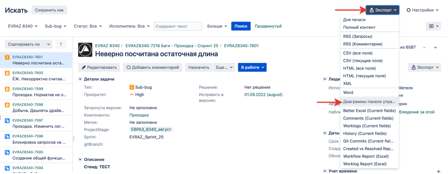 Для этого снова заходим в поиск задач, настраиваем фильтрацию. Нажимаем «Экспорт» и выбираем «Диаграммы панели управления».